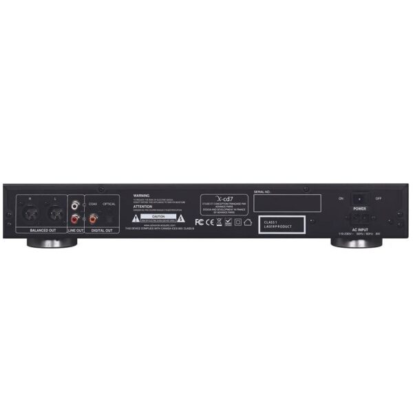 Equipped with coaxial (RCA) and optical (TOSLINK) digital outputs, unbalanced (RCA) and balanced (XLR) analogue outputs, the X-CD7 is the ideal CD player for your Hi-Fi system and your large CD collection.